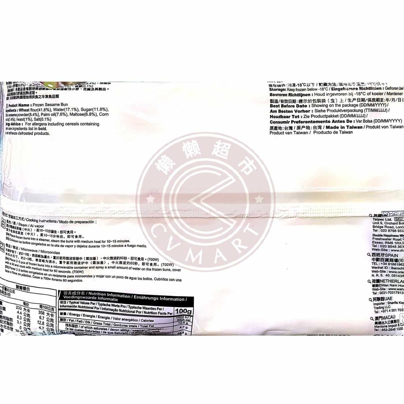 奇美【芝麻包】黑芝麻蒸包 (6只装) 台湾进口 390g