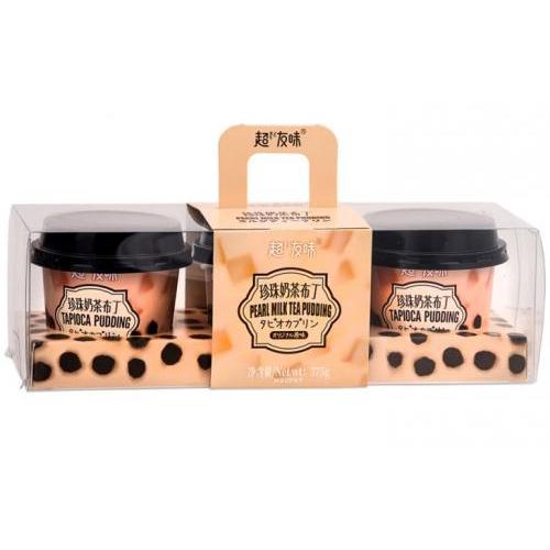 Water, Fructose Syrup, Milk Powder (7.2%), Hydrogenated Coconut Oil, Sugar, Black Tea Powder, Konjac Powder, Pearl (Corn Starch, Fructose Syrup), Thickeners (E412, E407, E415), Acidity Regulators (E331, E330), Emulsifier (E471), Gelling Agent (E508), Flavouring, Preservative (E202), Sweetener (E950), Colours: (E102, E150a).