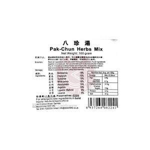 内 含: 熟地,党参,茯苓,白芍,白術,当归,川芎,甘草烹 饪 方 法:将全部材料洗净放入煲内,加上适量全瘦猪肉或去皮鸡肉及8碗开水文火煲二至三小时,用调味料,可供四至五人食用